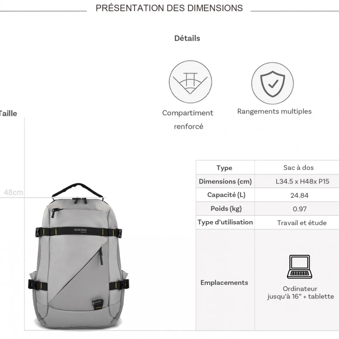 | Dimensions (cm) : L 34.50 x H 48.00 x P 15.00 |