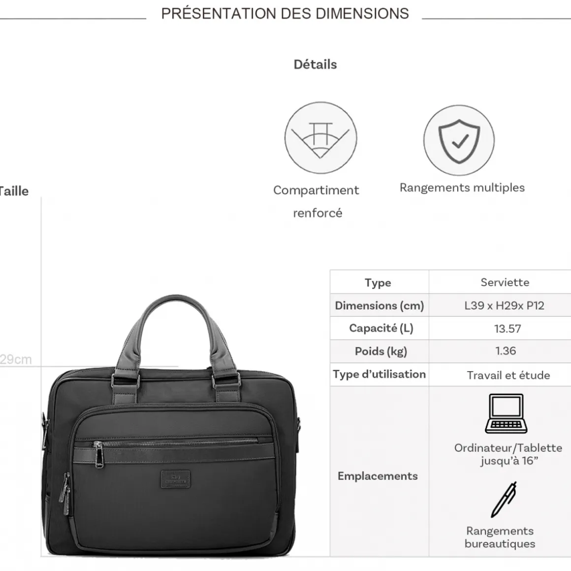 | Dimensions (cm) : L 39.00 x H 29.00 x P 12.00 |