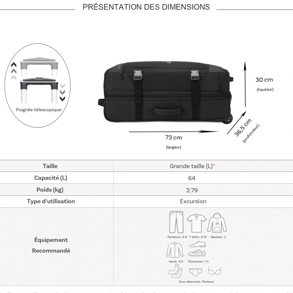 | Dimensions (cm) : L 73.00 x H 30.00 x P 36.50 |