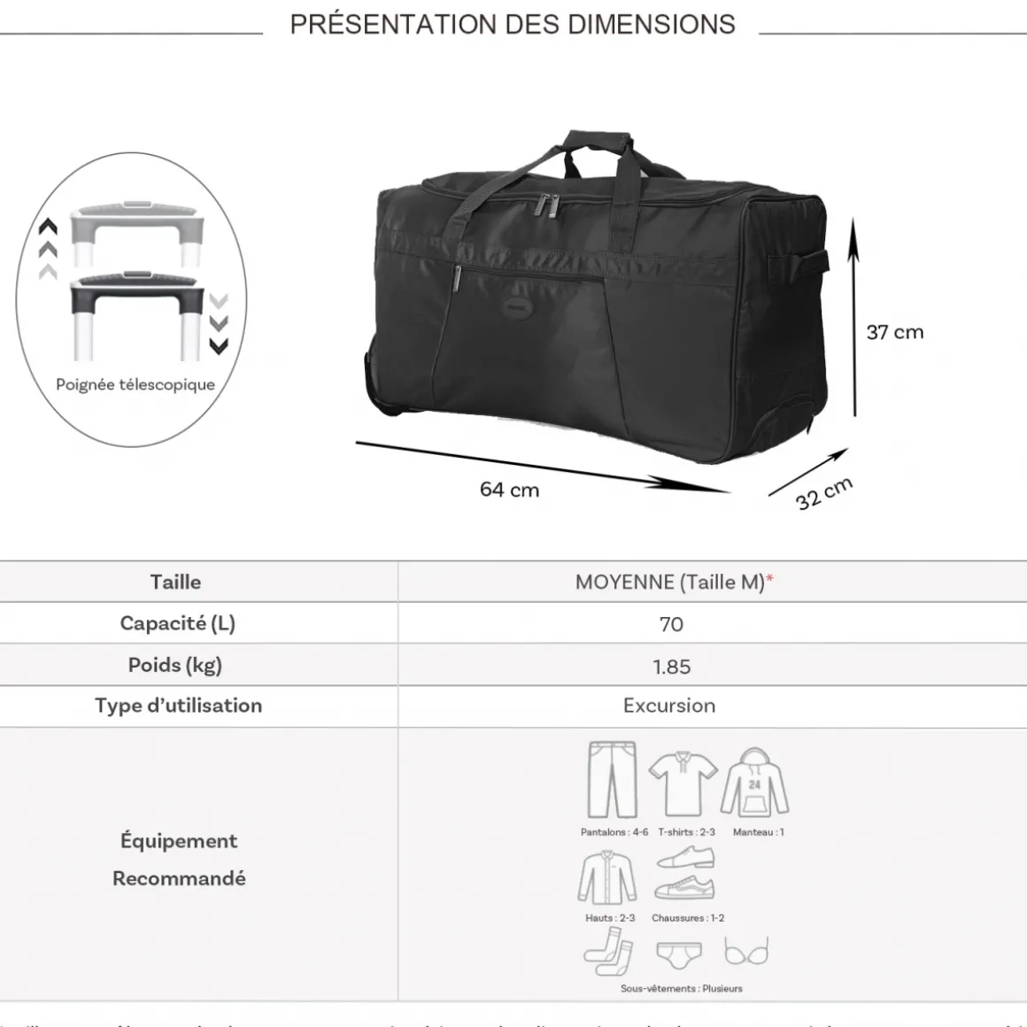 Nous attirons votre ATTENTION sur l’utilisation des sacs de voyage à roulettes.