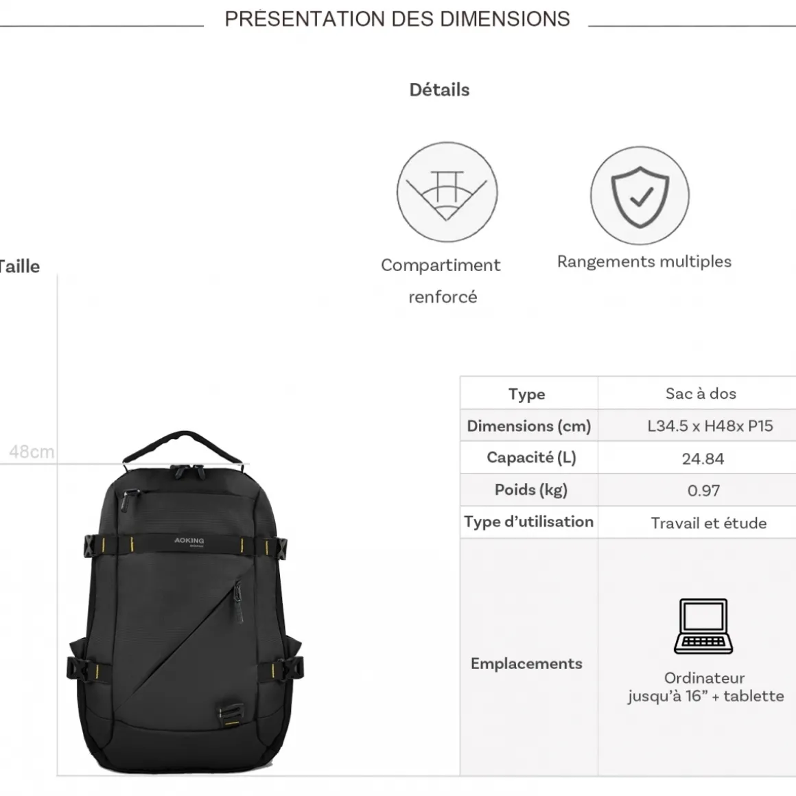 | Dimensions (cm) : L 34.50 x H 48.00 x P 15.00 |