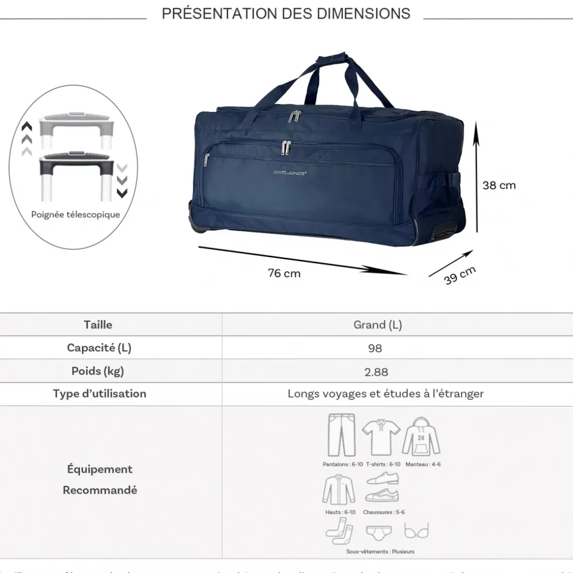Nous attirons votre ATTENTION sur l’utilisation des sacs de voyage à roulettes.
