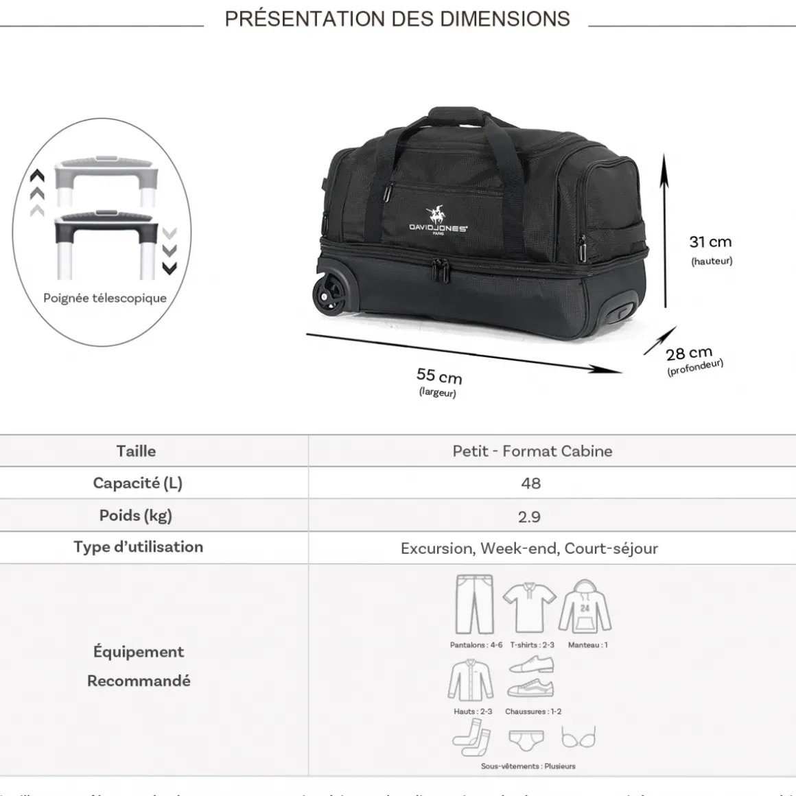 Nous attirons votre ATTENTION sur l’utilisation des sacs de voyage à roulettes.